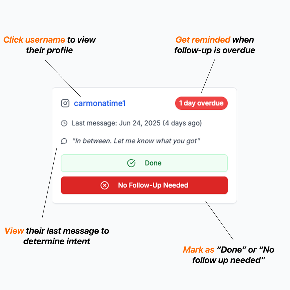DM Tracker saves me hours every week. I don’t dig through DMs or use spreadsheets anymore. I just log in, talk to leads, and close.