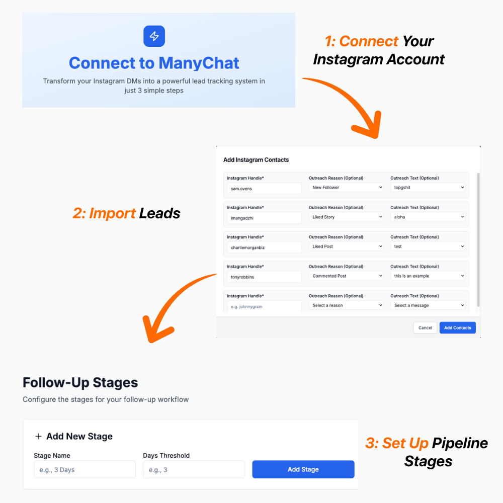 Connect to ManyChat, import leads & create pipeline stages in under 5 minutes.