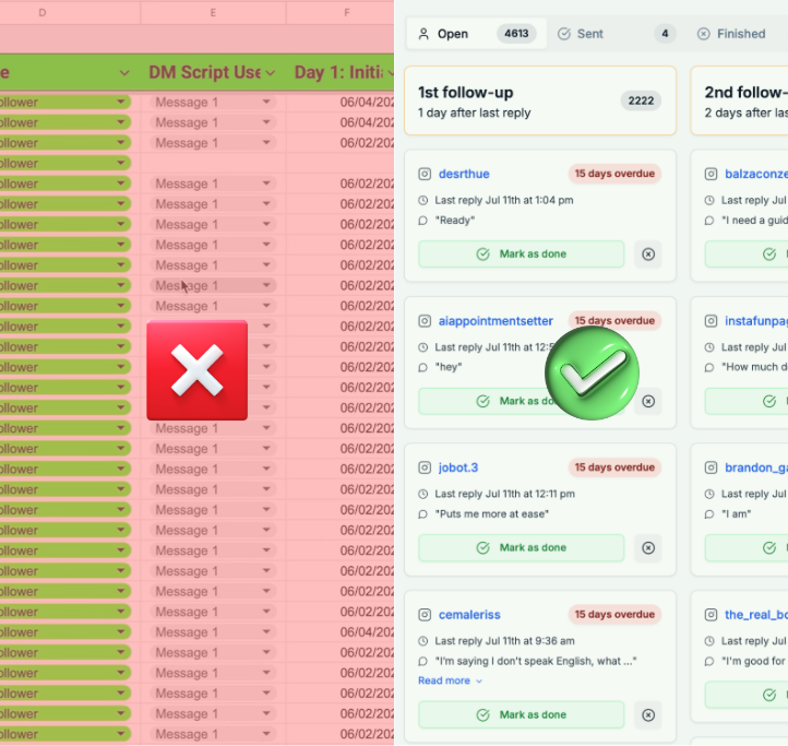 Save 4-6 hours/week - with a full-stack Instagram CRM that replaces spreadsheets
